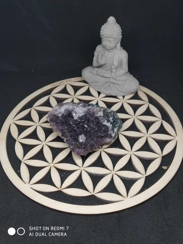 Lune Amas de Quartz Fleur de Vie Coquille St Jacques
