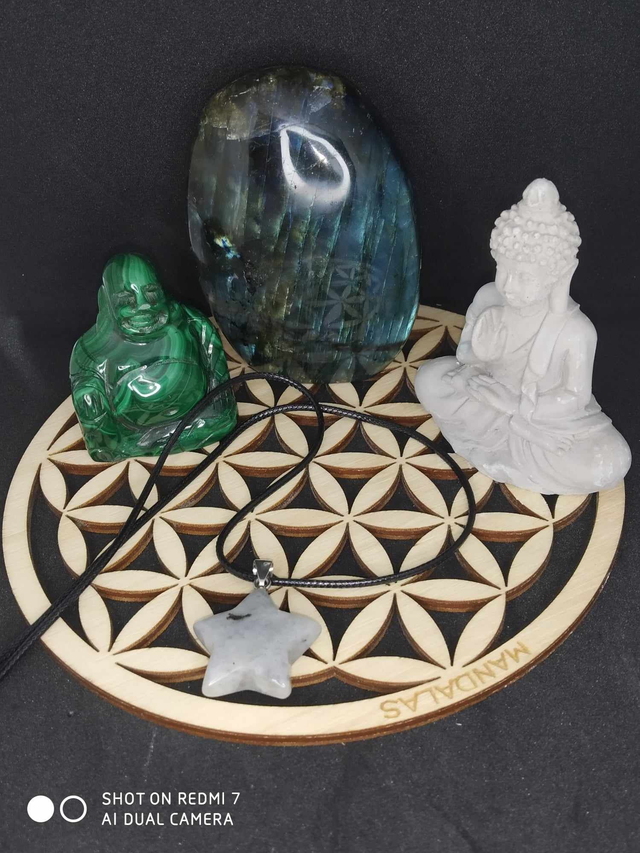 Amas de Quartz Coquille St Jacques, Fleur de Vie Sauge. Palo Santo